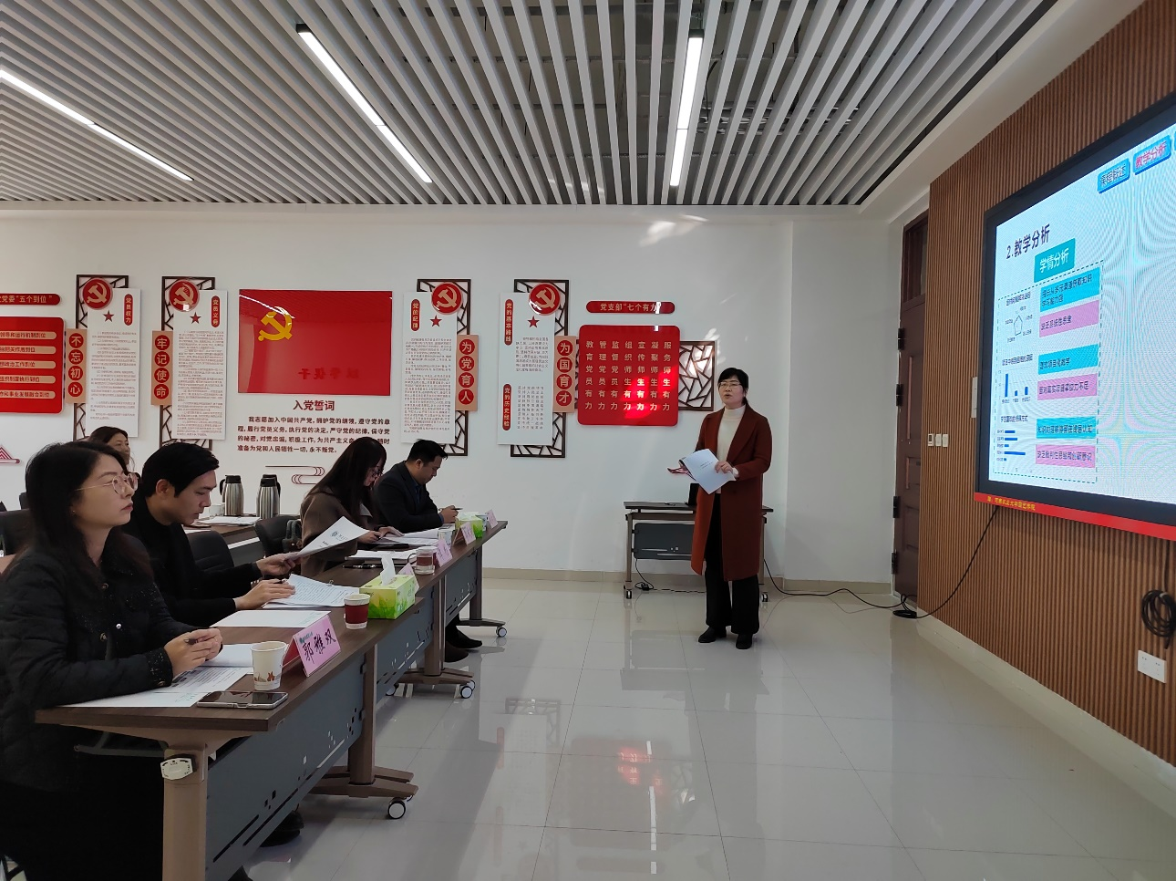 模拟环节结束后,现场进入评课研讨阶段。专家们结合自身参赛经验,从PPT制作、内容逻辑、语言表达、教态仪容及答辩技巧等多个维度,对参赛教师的表现进行了细致点评。在充分肯定各位教师前期努力与教学亮点的同时,也针对课件整体优化、创新点凝练、创新报告撰写等方面提出了中肯且具操作性的优化建议。现场研讨氛围热烈,展现出园艺学院教师团队精益求精的教研态度和团结协作的优良风气。