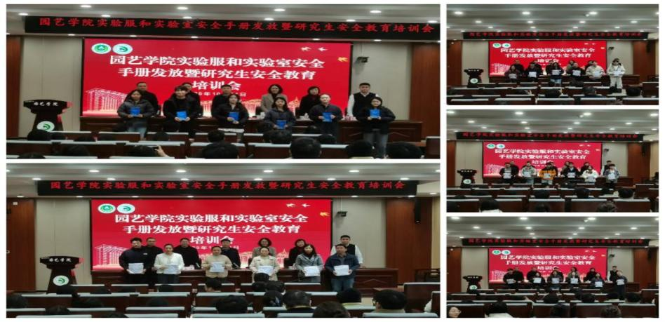 培训会上,领导专家们为研究生新生发放《河南农业大学实验室安全手册》,为实验室负责人和研究生各年级代表分别发放了实验服和实验记录本。