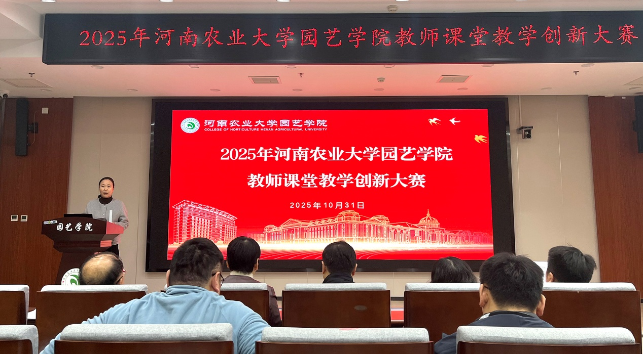 为进一步践行“推动教学创新、培养一流人才”目标、提升学院教师教学创新能力、激发课堂教学创新活力,10月31日上午,园艺学院在龙子湖校区力行楼北209报告厅举办了2025年教师课堂教学创新大赛。学院党委书记郭娟、副院长胡建斌、副院长谭彬、院教学督导和全院教师参加,本次比赛由教学秘书赵仁亮主持。
