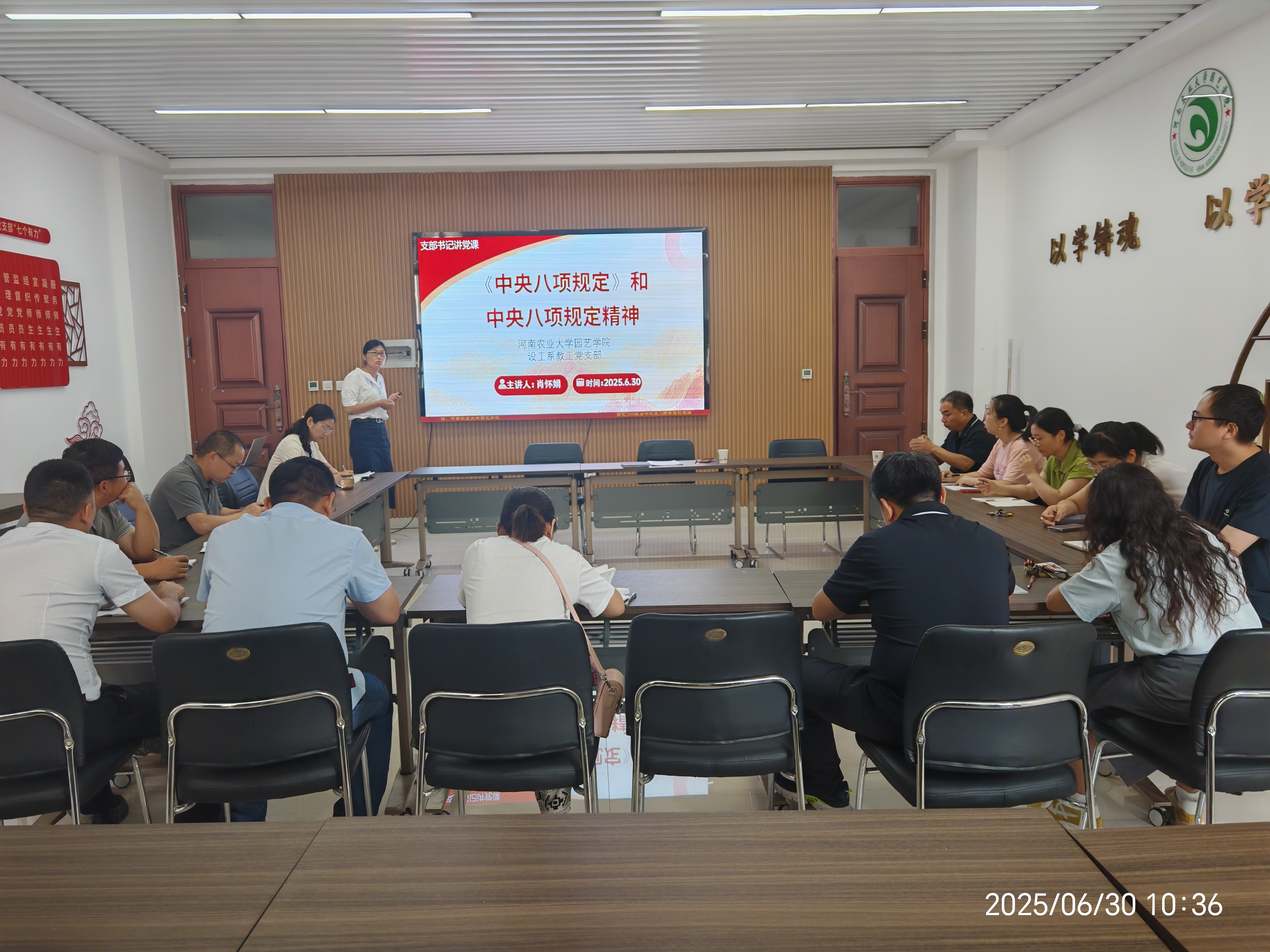 为深入贯彻中央八项规定精神,将师生关注的问题落实落细,园艺学院设工系教工党支部于6月30日围绕“深入贯彻中央八项规定精神的成效与经验”召开专题研讨会,切实将中央八项规定精神内化于心、外化于行。学院党委书记秦素玲作为普通党员参加了研讨会。
