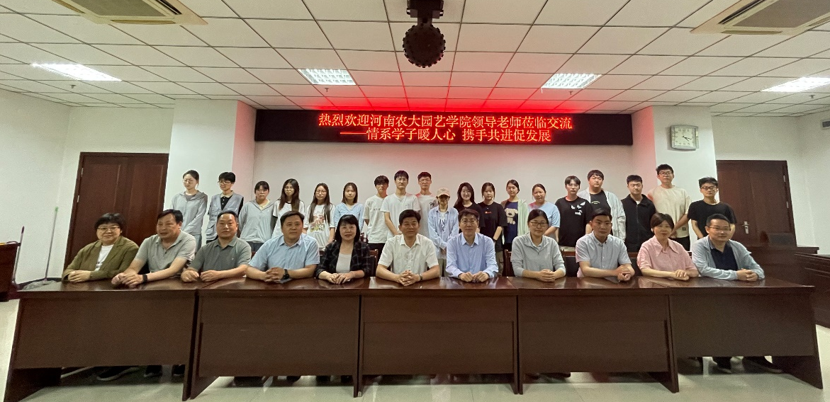 2025年5月7日,院长郑先波、副院长陈广辉一行赴河南省农业科学院,对“卓越园艺师培养计划”的学生实习情况进行中期检查,实地考察学生实习情况,并与省农科院专家、实习学生代表座谈交流。