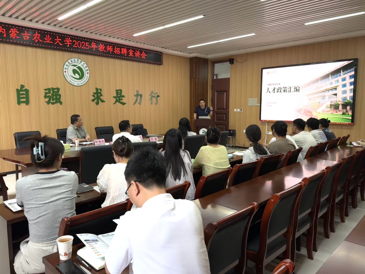 随后,靳国斌介绍了内蒙古农业大学的历史沿革、学科特色、人才队伍和科研成果。杨忠仁着重阐述了此次内蒙古农业大学人才招聘的岗位需求、招聘条件、人才政策、待遇保障等内容,强调了学校对人才的重视与培养,为教师发展提供广阔空间。