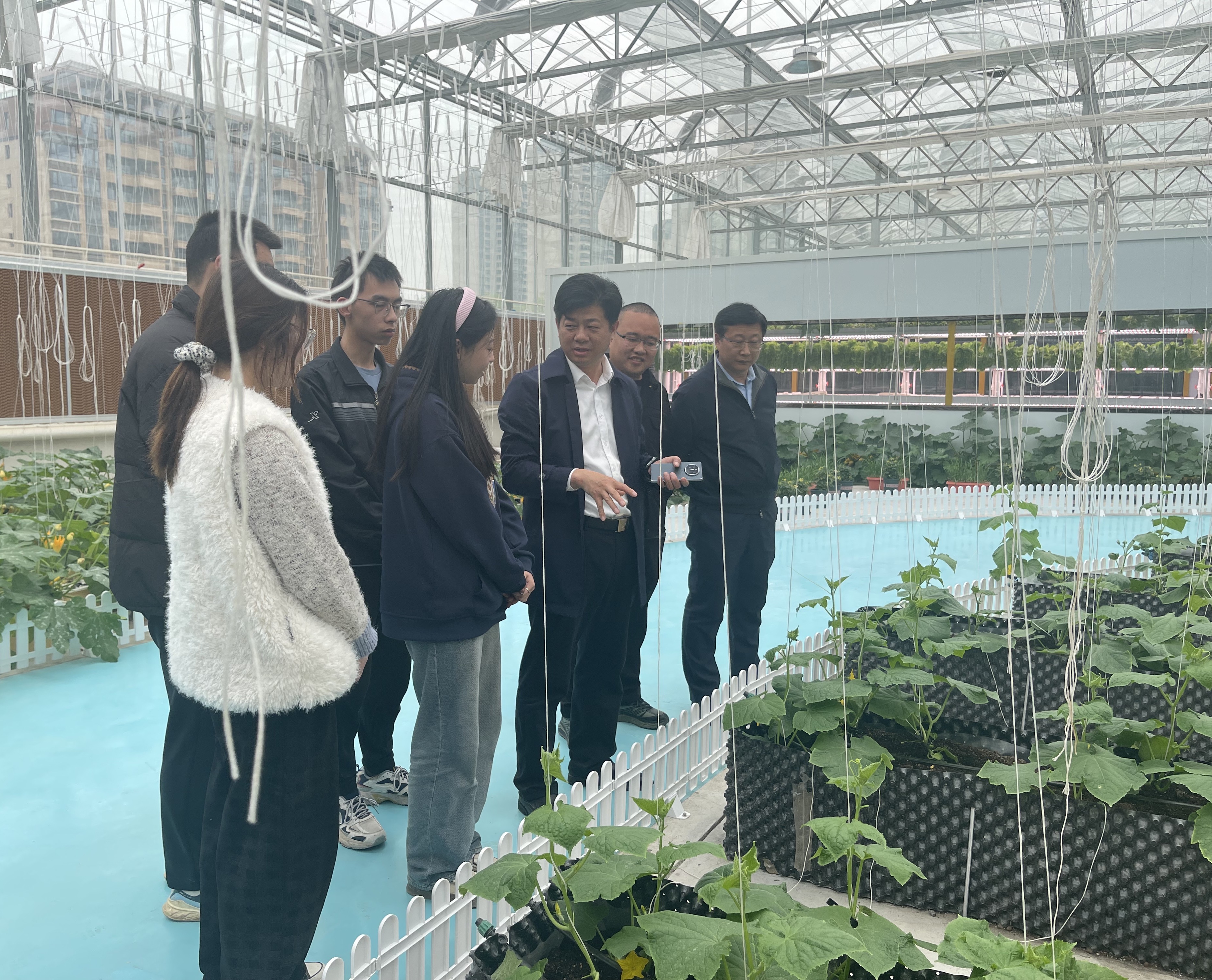 随后,学院一行人到由我院技术支撑的中原农谷智能温室,慰问看望了实习生,详细了解大家到实习基地这段时间的学习、生活和工作情况,并对学生实习期间的安全问题进行了强调。在参观交流过程中,双方就产学研合作、人才培养、技术支持等方面进行了深入探讨,共同探讨了合作的方式和机会。