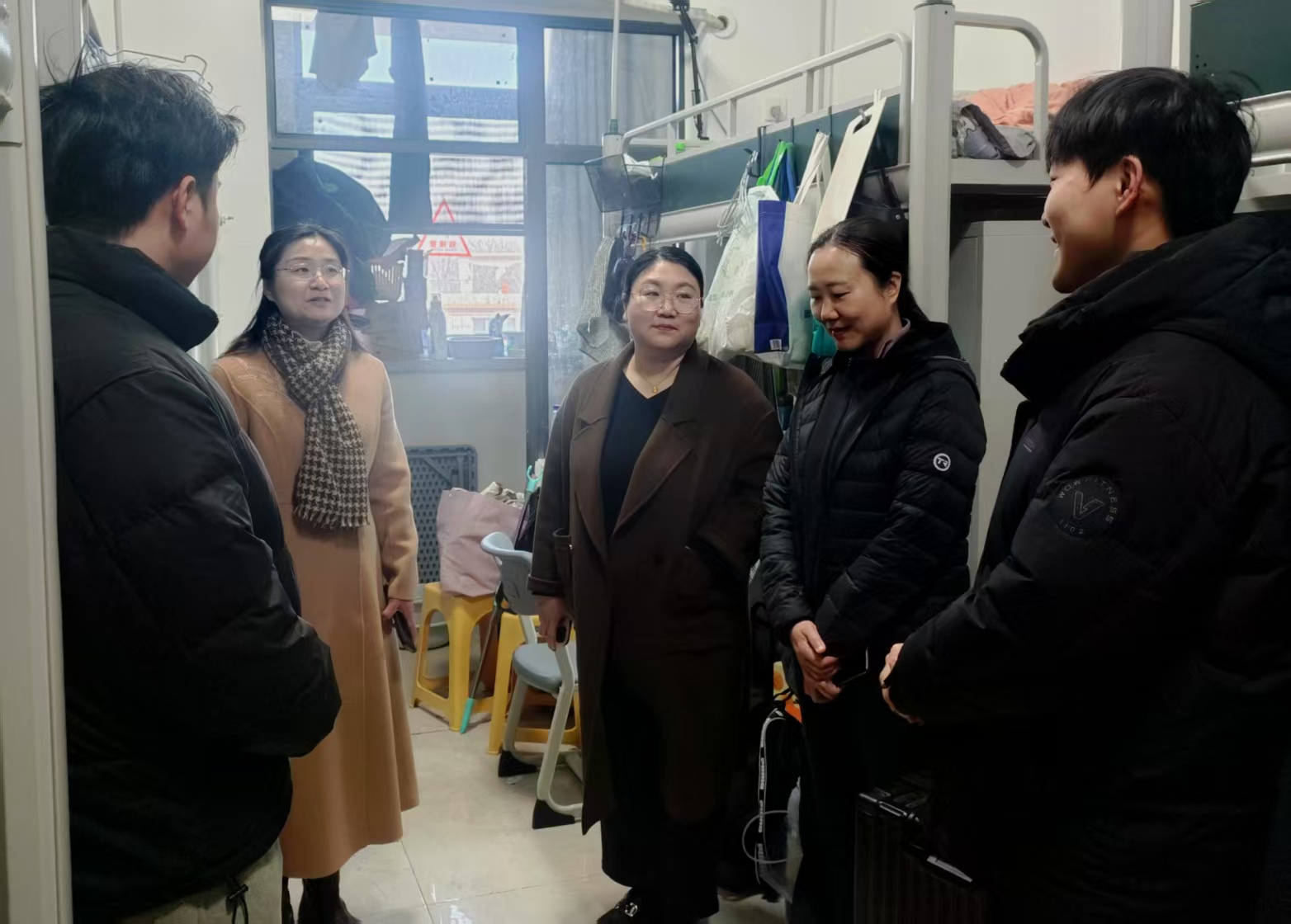 走访过程中,学院领导与同学们亲切交谈,详细询问了大家的假期生活、学习规划以及返校后的适应情况。秦素玲鼓励同学们在新学期树立明确目标,珍惜时光,努力学习,同时也要注重宿舍卫生,关注身心健康,积极参与校园活动,全面提升自身综合素质。郑先波特别叮嘱同学们要注意宿舍安全,营造温馨和谐的宿舍氛围,并对毕业班学生耐心叮嘱,在考研、考公和就业等方面加倍努力,实现自己的职业理想。