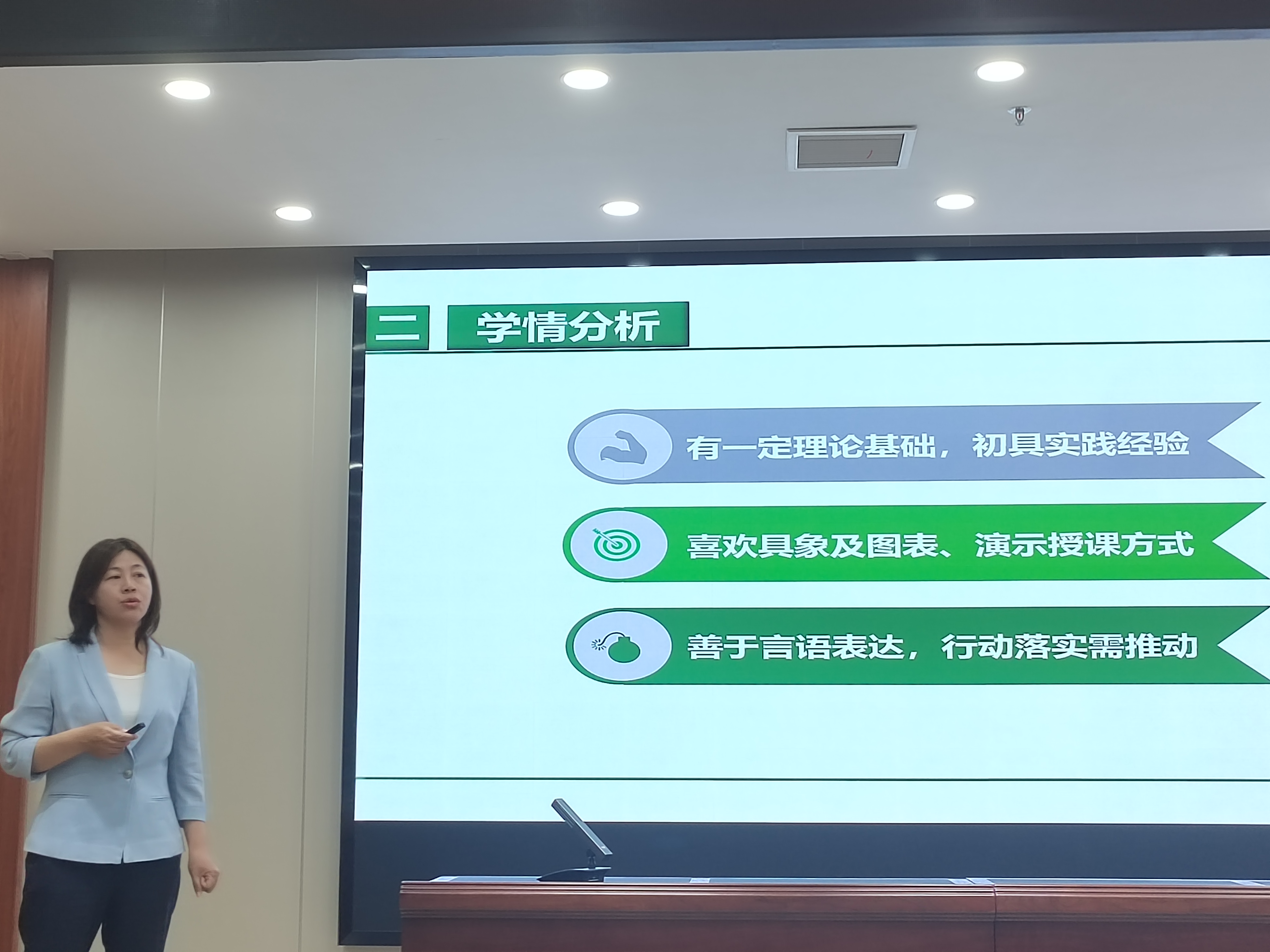 比赛开始,郑先波对各位参赛教师的积极参与表示肯定,并介绍了本次比赛内容和要求。随后14名教师依次上台进行说课和模拟课堂教学。他们以匠心独运的精神,从教学理念、教学内容、教学手段、教学过程、教学效果等方面进行了精彩的课堂教学展示,充分展现了良好的专业素养。他们以生动的语言、丰富的教学内容和灵活的授课方法赢得了现场评委和青年教师的认可与好评。经过激烈角逐,最终苏会、王献、贾芝琪荣获一等奖。