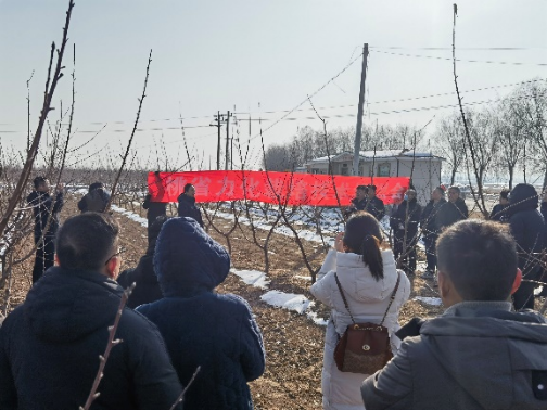 12月20日,为深入学习贯彻习近平总书记对低温雨雪冰冻灾害防范应对工作的重要指示精神,我校园艺学院果树系教工党支部党员在园艺学院冯建灿教授、园艺学院副院长郑先波教授、园艺学院果树系教工党支部书记谭彬教授的带领下,赴平原新区盐店庄村万亩桃基地开展桃树防寒措施及省力化栽培技术培训活动。新乡市林业工作站原站长正高级工程师何长敏、盐店庄村党支部书记关源群、盐店庄村村委副主任朱迎军及当地果农100余人参加了本次活动。