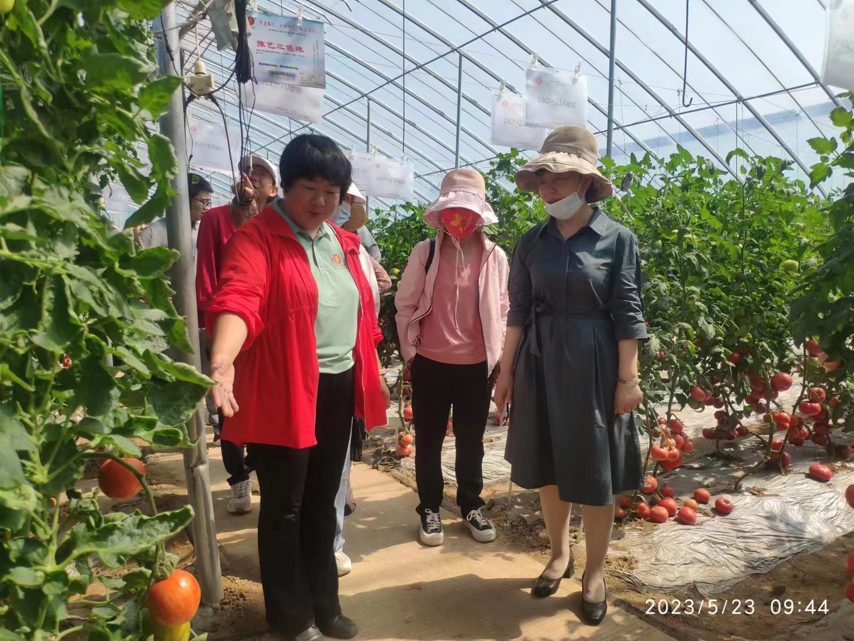 进入园区后,映入眼帘的就是一排排的现代化温室大棚,老师们兴致盎然,边参观边学习边交流,不知不觉中已了解了多种番茄、辣椒、甜瓜和西瓜等的生长和结果习性、管理要点及产销情况。同时还品尝了不同品种瓜果的风味,交流不同物种间科研现状、研究方向及存在问题,讨论未来果蔬发展方向和育种方法。