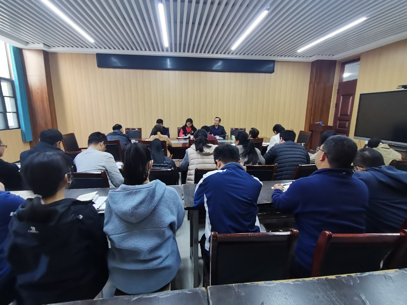 2023年4月25日下午,园艺学院在龙子湖校区第二实验楼北215召开2022-2023学年第二学期期中教学检查座谈会,院党委书记秦素玲、院长孙守如、副院长郑先波出席会议。座谈会由副院长郑先波主持,教学秘书、各系教学主任、部分青年教师等26人参加了本次座谈会。