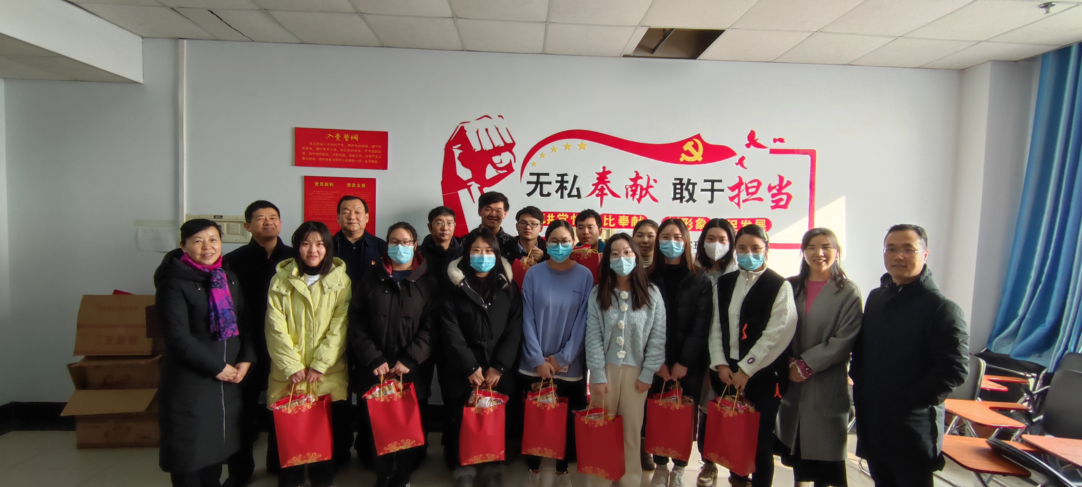 学院领导为同学们送上麻糖、水果等新年礼包,仔细询问了同学们寒假期间的实验、生活情况,勉励因疫情影响无法正常回家的同学,要及时调整状态、积极投入科研实验工作,鼓励同学们要充分利用好这段时间,好好学习、充实自己,并注重身体锻炼,做到劳逸结合。院长孙守如说:“虽然你们农历小年不能与家人团聚,但学院也是一个温暖的大家庭,老师就是你们的家人。”