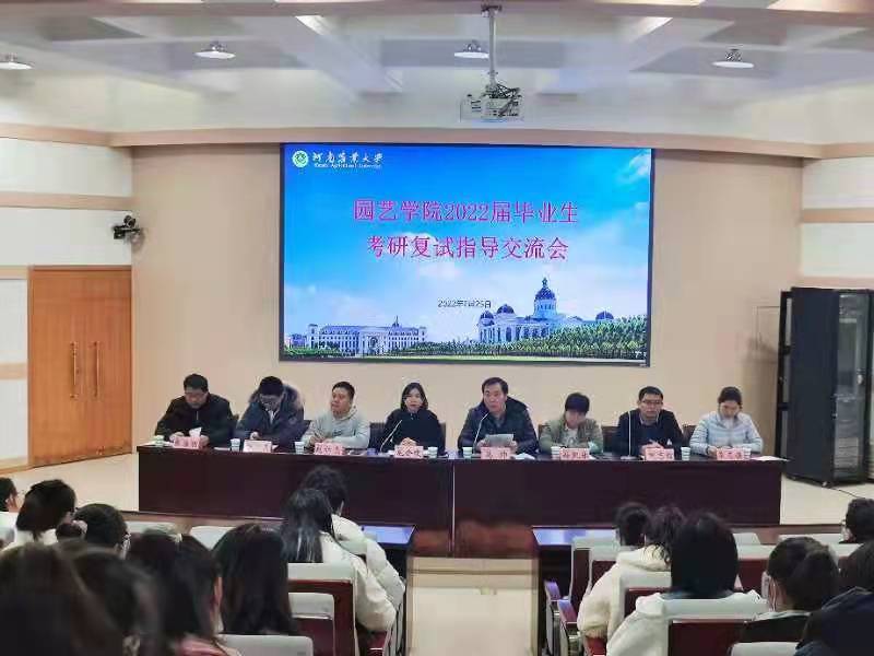 2月25日上午9:30,园艺学院于文化路校区300人报告厅召开2022年春季开学第一课暨2018级毕业生考研复试指导交流会,院党委副书记毛会坡、院教学秘书赵仁亮、院教学副主任孙凯乐、蔬菜系副主任杨森、以及各系青年教师、毕业生班主任代表国志信、李志谦、张海朋、王苗苗、王磊共同参加,会议由院团委书记冯帅主持。