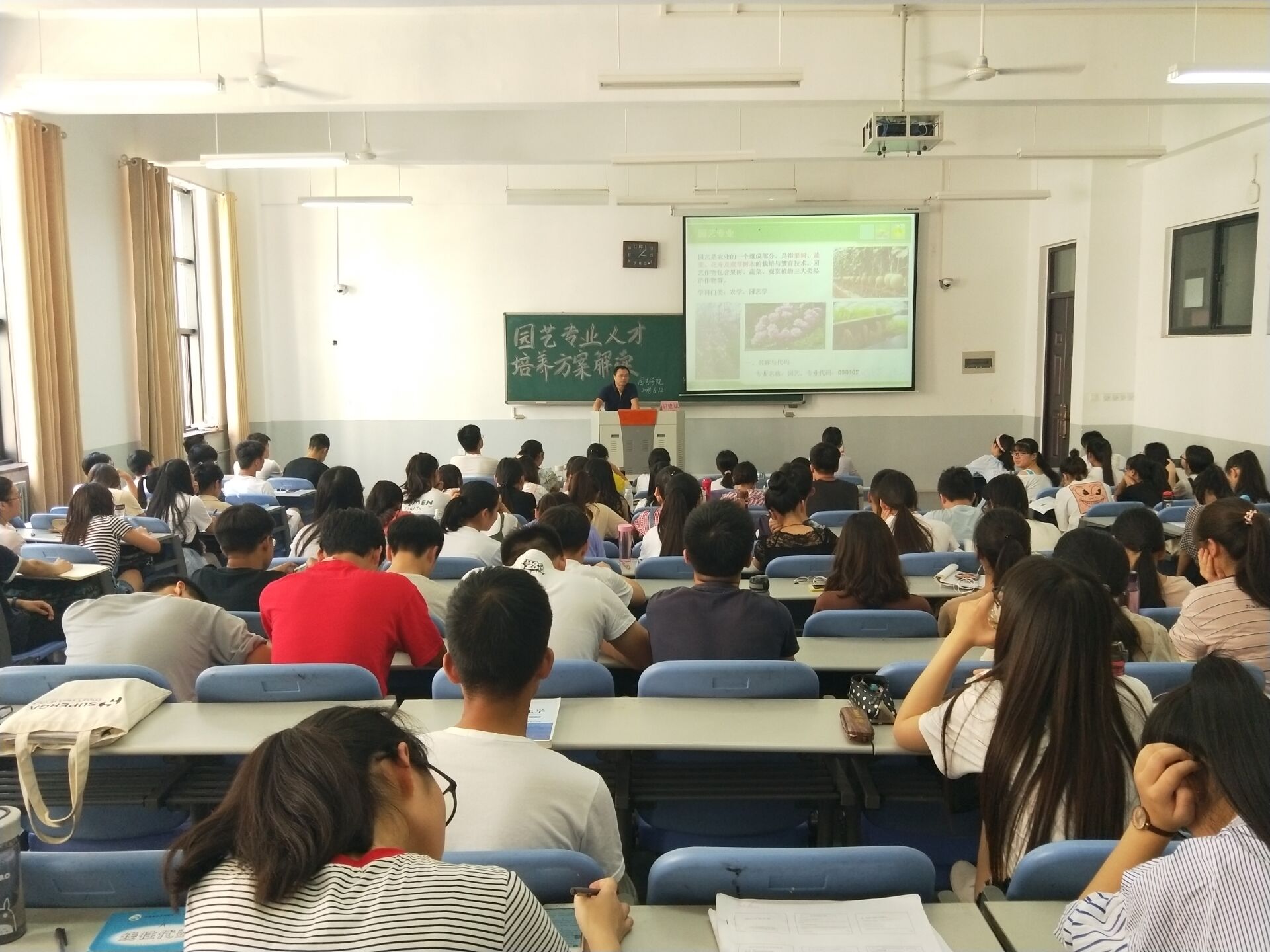 6月12日下午,由园艺学院组织的园艺专业人才培养方案解读于繁塔楼c102成功开展。会议邀请系主任胡建斌老师主讲,17级辅导员陈桃老师主持了此次会议,17级园艺专业全体学生聆听了此次报告。