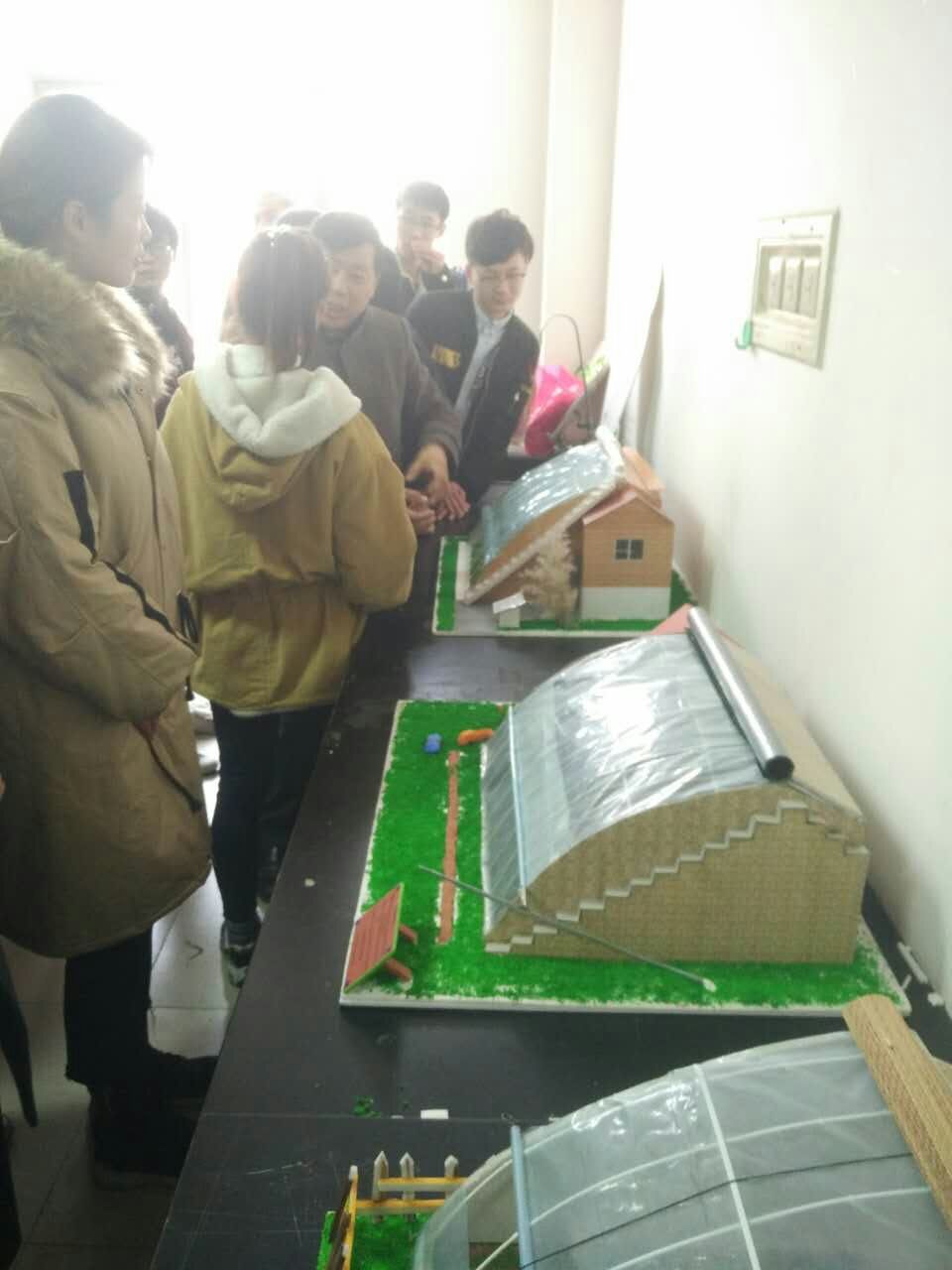 在模型制作过程中,各个小组按比例制作,以课堂所学的理论知识为指导,力求还原真实温室的结构和真实情境。制作的日光温室模型结构参数合理,采光效率高、保温和通风措施周全,高跨比、保温比适当。制作的连栋温室模型比例适当、结构合理,传力路径明确,设施设备配置齐全。制作的伊甸园温室模型,模拟采用先进的膜结构技术,在废旧的矿区建设ETFE充气薄膜温室,温室内设置多个植物栽培区,环保理念突出,是改造废弃地块、发展观光旅游的好项目。