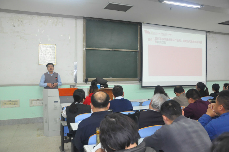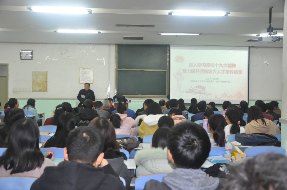 为深入学习宣传贯彻党的十九大精神,12月5日下午,我院于工程楼302举办十九大精神宣讲会,邀请河南农业大学宣讲团成员、经济与管理学院副院长何泽军以“深入学习贯彻十九大精神,着力提升河南农大人才培养质量”为主题开展宣讲。院党委书记耿超明主持宣讲会,我院全体教工及学生代表参加此次宣讲会。