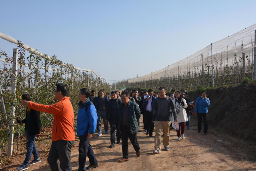 2017年11月7日,河南省重大科技专项果树优异种质创新和高效育种体系现场观摩会在洛宁海升现代苹果矮化密植示范园隆重举行。河南农业大学科技处田志强副处长、河南农业大学园艺学院部分教师、河南科技学院部分教师、洛宁海升集团苹果种植技术团队、企业农场主和广大苹果种植大户共计约120余人参加此次观摩会。
