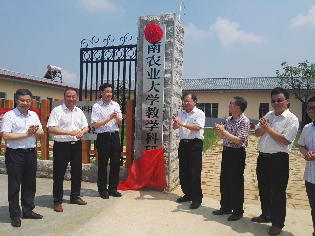 6月22日上午,“河南农业大学与信阳亚森生态农林开发有限公司合作的科研教学实习基地”揭牌仪式在信阳亚森生态农林开发有限公司基地隆重举行。院党委书记耿超明、院长冯建灿、果树系相关教师、罗山县县委相关领导和信阳亚森生态农林开发有限公司董事长李世江等50余人参加了揭牌仪式。