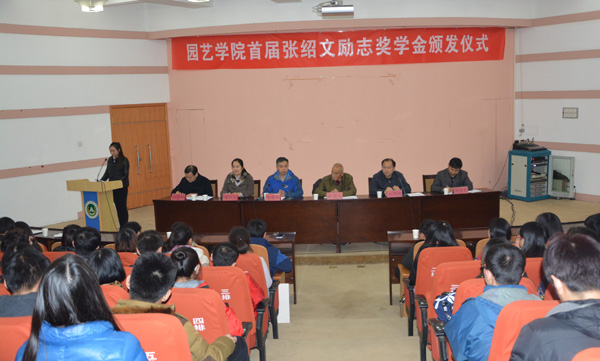 11月26日下午,我院于300人报告厅举行园艺学院首届张绍文励志奖学金颁发仪式。张绍文教授、我院党政领导班子成员、部分教师、学生代表出席了此次颁奖仪式。仪式由园艺学院院长冯建灿主持。