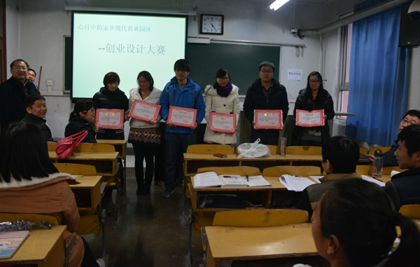 《农业园区规划与管理》是设工专业的一门主干课,由蔬菜系李胜利老师主讲。为了强化学生将理论知识与实践相结合的能力,探索课程的考核方式,课程开始前,任课老师就给学生布置了一份作业,让同学结合课程内容和专业知识,以自己的家乡为项目实施地点,规划一份现代农业园区创业设计书,以此来代替考试。这种做法一开始就得到了学院领导的重视,经过精心组织,通过预赛选拔出14名同学参加决赛,最后选出6份优秀设计学院给予表彰。