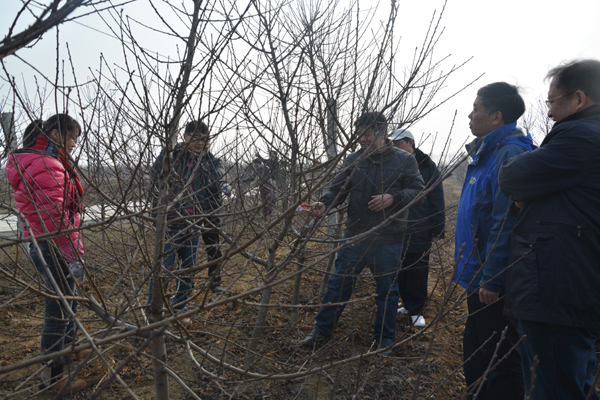 一年一度的学生冬剪实习队伍第一批108名学生,在果树系副主任郑先波副教授、省特聘教授吴国良、简在海、孟海军、史江莉和白团辉等6位老师和院团委书记李坤的带领下,已于1月5日入住南阳社旗京源生态农业公司果园基地,进行为期6天的果树冬剪实习。1月8日,院党委书记耿超明、院长冯建灿一行赶赴基地,看望正在那里进行实训的学生和老师。