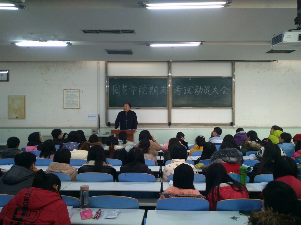 12月23日下午,园艺学院分别于文化路校区工程楼302教室和龙子湖校区餐厅三楼举行期末考试动员大会。在文化路校区,针对2013级同学和2014级专升本的同学进行了考试动员,动员会由院党委书记耿超明主讲、院团委书记李坤主持。在龙子湖校区,对全体14级统招生进行了考前动员,院党委副书记侯亚兵、办公室李琼老师、辅导员范兴强出席了动员会。