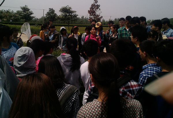 4月26日,同学们到信阳市农科院五里店茶叶示范园参观学习,参观了示范园的茶叶加工设备及品种资源圃。在示范园梁丽云、翟卿两位老师分别对《茶树栽培学》、《茶树病虫害防治》等专业课程知识进行了现场教学。在返程途中,老师和同学们到文新茶叶有限责任公司羊山新区科技示范园参观学习。同学们对科技示范园一尘不染的检测车间,先进的制茶包装设备留下了深刻印象。在科技示范园参观过程中,文新茶叶有限公司刘文新董事长为同学们发表了热情洋溢的讲话,并与同学们进行了互动交流。