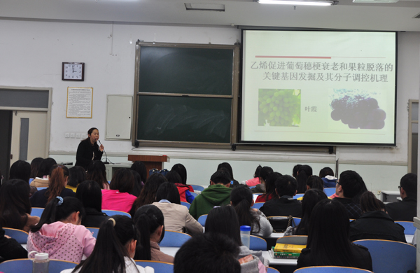 11月5日下午,我院副教授叶霞在工程楼103教室,为我院研究生和部分本科生做了题为“乙烯促进葡萄穗梗衰老和果粒脱落的关键基因发掘及其分子调控机理”的专题报告。引导同学们如何开展研究,怎样进入科研课题。此次报告也是我院研究生学术文化艺术节园艺学术交流月活动之一。