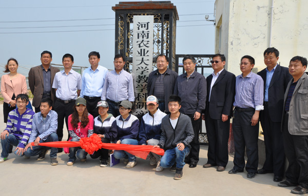 4月27日,河南农业大学濮阳市丰地现代农业科技示范园教学科研实习基地揭牌仪式在濮阳市华龙区丰地现代农业科技示范园举行。园艺学院党委书记耿超明、院长冯建灿、濮阳市华龙区副区长李国报、濮阳市林业局副局长王少鹏共同为实习基地揭牌。园艺学院部分教师和在当地进行“卓越园艺师培养计划”生产实习阶段的学生参加揭牌仪式。