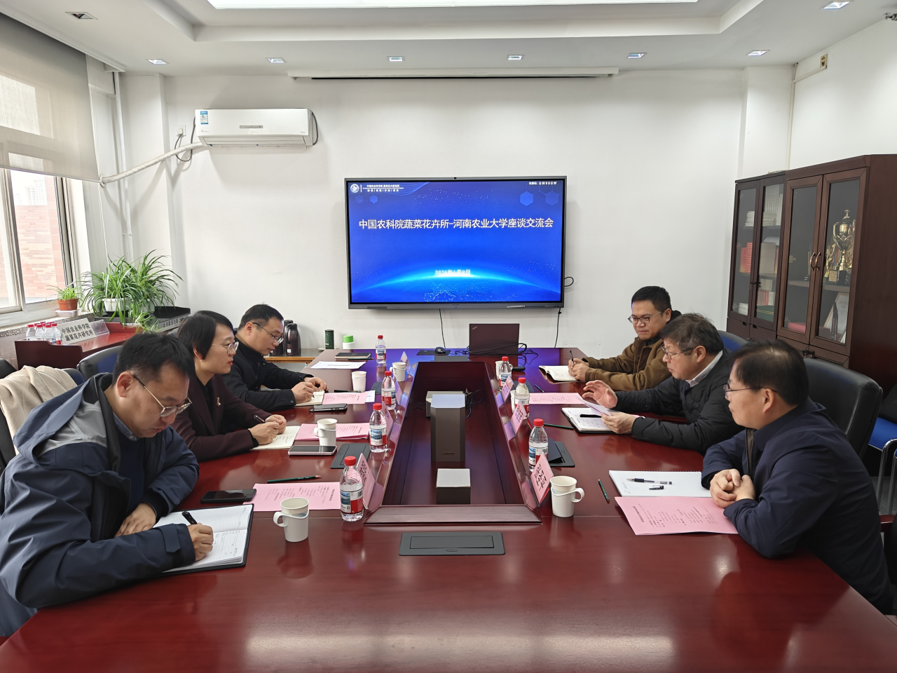 张友军院士对河南农业大学园艺学院调研团表示欢迎。王万兴主任系统介绍了蔬菜花卉研究所近年来的发展历程与重要科研成果。张圣平副所长重点分享了蔬菜花卉研究所在人才队伍建设、科技成果转化及服务乡村振兴等方面的实践与成效,并希望以此次交流为契机,深化双方在重大项目攻关、资源共享与专家互聘等领域的合作。