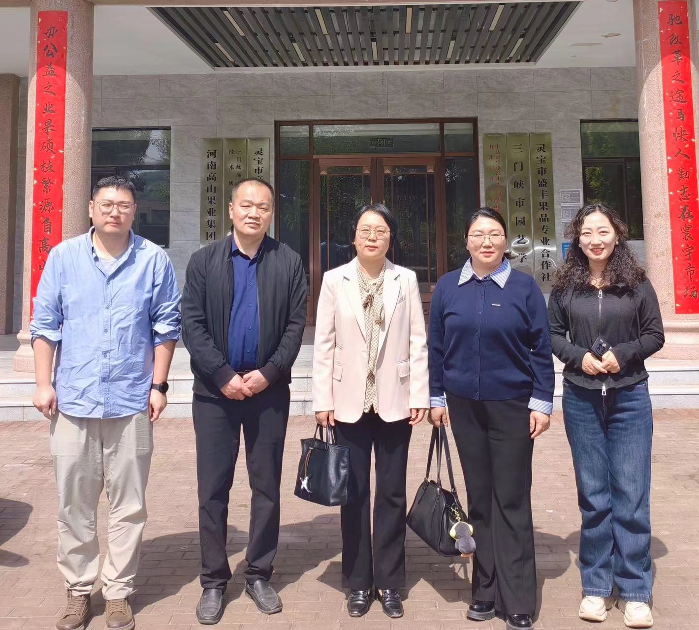 为深入贯彻落实“访企拓岗促就业”专项行动,进一步深化校企合作,拓宽毕业生就业渠道,2026年4月10日,河南农业大学园艺学院党委书记郭娟、党委副书记余果、果树系主任焦健一行前往灵宝市高山天然果品有限责任公司进行走访调研。高山果业是国内苹果产业的标杆性现代农业企业,同时荣获“农业产业化国家重点龙头企业”与“国家林业重点龙头企业”称号,在数字果园建设、脱毒苗木繁育及绿色生态农业等方面走在全国前列。高山天然果品有限责任公司总经理白建伟、刘国飞等热情接待了学院一行。