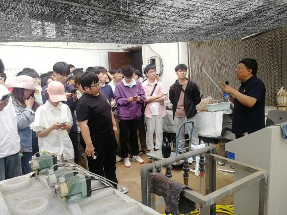 5月25日,学生们首先到达毛庄科教园区,设工系王吉庆教授结合线上企业发布的项目需求,引导大家实习过程要关注园区的规划设计、设施设备及造价、蔬菜种植模式及茬口安排等。接着,董晓星老师带领大家参观了智能化的温室大棚,介绍了温室的构造、环境调控系统以及智能化管理技术等。在老师们的指导下,学生们亲手操作了温室内的各种设备,学习了如何根据作物的生长需求调整温、光、水、气等环境因子。为深入了解日光温室及塑料大棚建造所需构件及造价,同学们深入河南省怡园温室材料有限公司进行考查,并与负责人深入沟通交流。