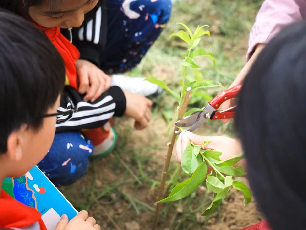 仪式上,园艺学院向枫叶小熊小学师生代表赠送了河南豫艺种业公司选育的优质蔬菜种子。学院果树系教师代表与学院第七期青马班同学和小朋友们手拉手开展百果园劳作活动,在专业老师的指导下学习实践如何给果树抹芽。小学生们每四人一组,分别由一位园艺学院果树系的老师带领着,在百果园里学习给果树抹芽。小学生们紧紧围绕在自己的“学习导师”身边,很快就对这片园地熟悉起来。他们或者认真观察,或者动手实践,或者问着各种各样的问题。“导师们”也耐心地向小学生展示、指导和解答。