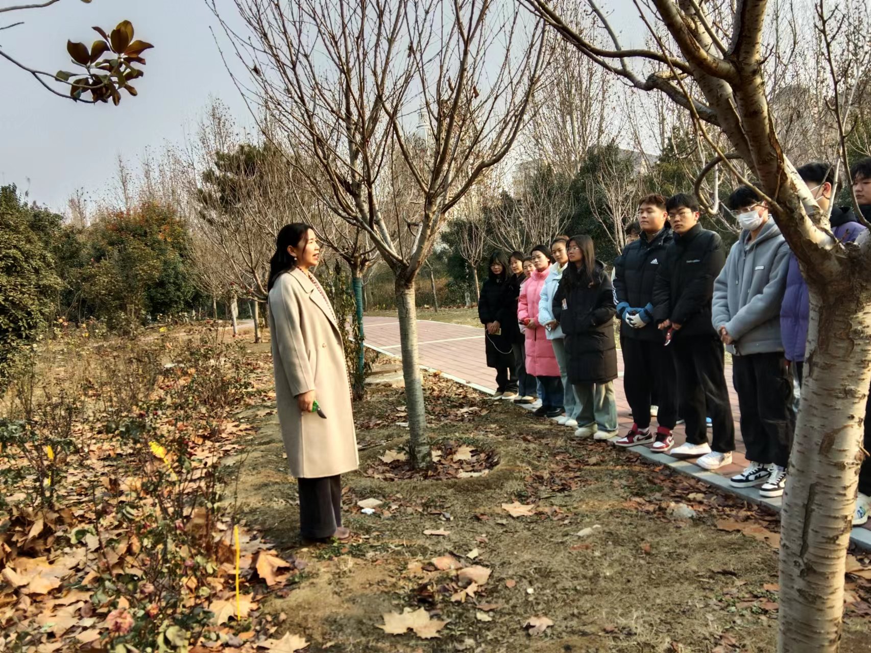 为了让学生们深入体验耕读之美,优化环境,养护我院植物生长,探索“耕读教育”育人模式。我院组织第七期青马班全体学员于12月27日上午在龙子湖校区第一实验楼东北侧月季资源圃修剪月季花枝。我院特别邀请了《花卉栽培学》课程组教师薛东齐、郭鑫、娄雪源和蒋丽微到场指导,院党委副书记毛会坡,2022级辅导员乔芳芳出席活动。