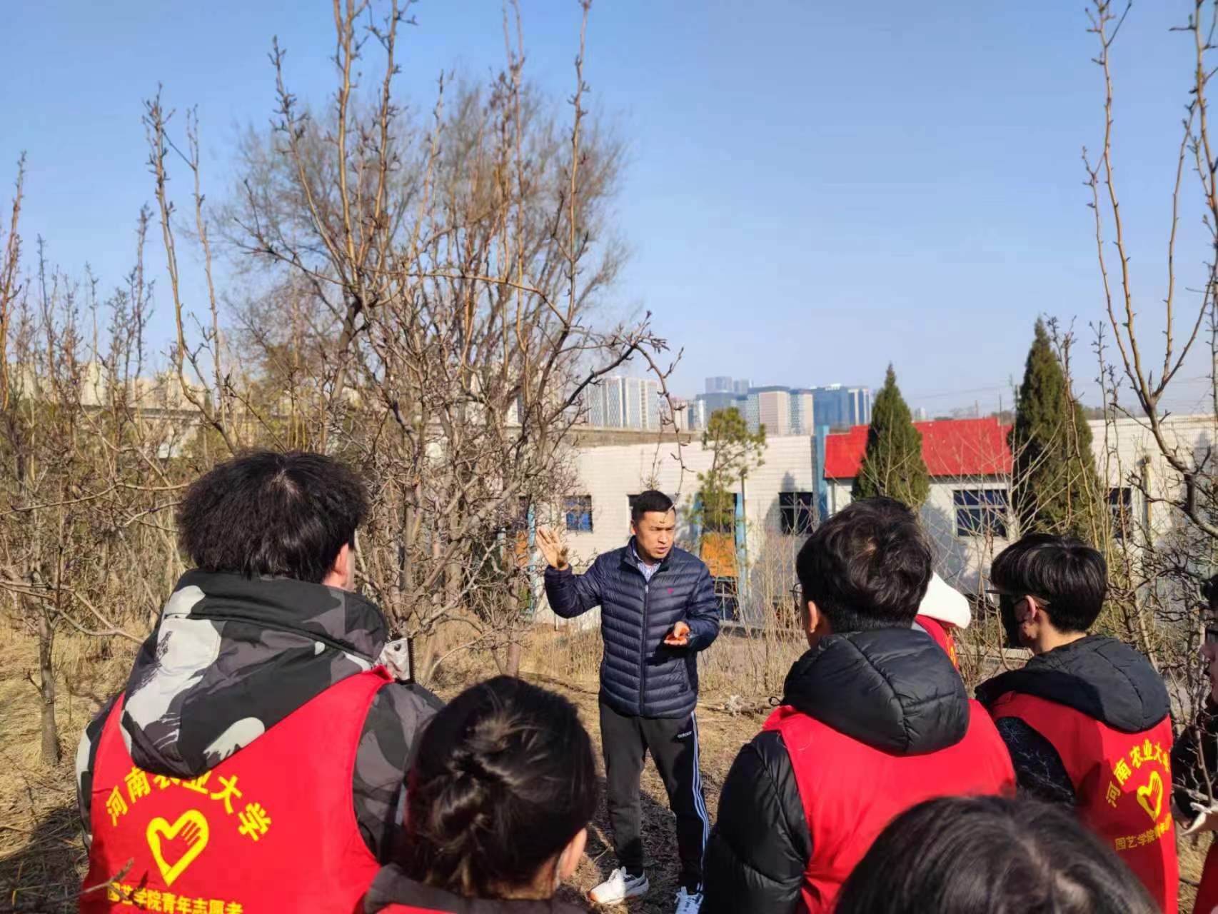 3月2日上午,在第61个学雷锋纪念日即将到来之际,园艺学院科研秘书、果树系教授白团辉和院团委书记冯帅,共同带领学院志愿者协会和青马班学生骨干来到郑州市管城区中医院青龙山院区,为院区的梨树开展志愿修剪活动。