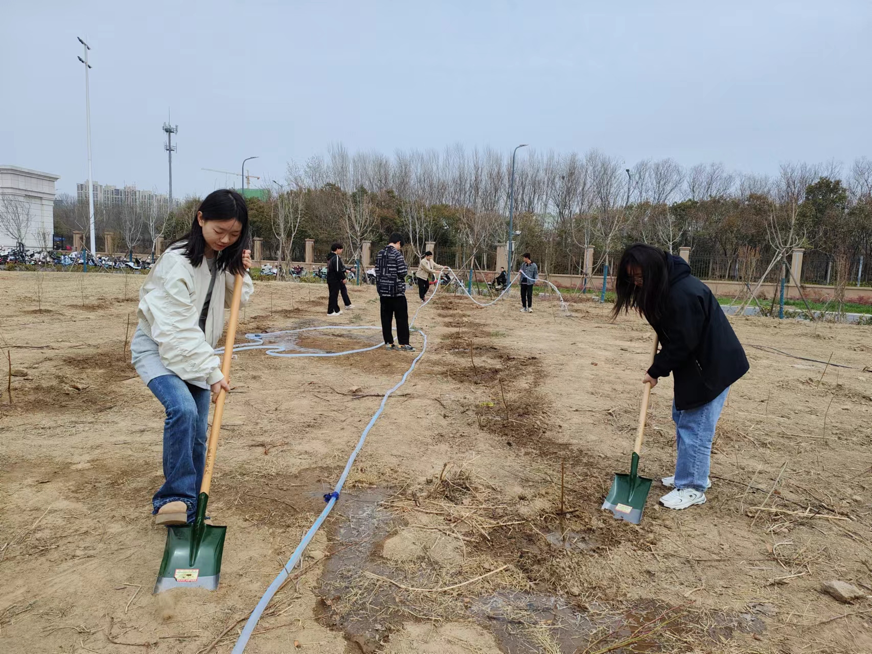 为保证果树正常生长所必需的水分供应,确保果树健康生长,3月17日上午,园艺学院第七期青马班成员在龙子湖校区北门百果园集合,开展果园浇灌活动。