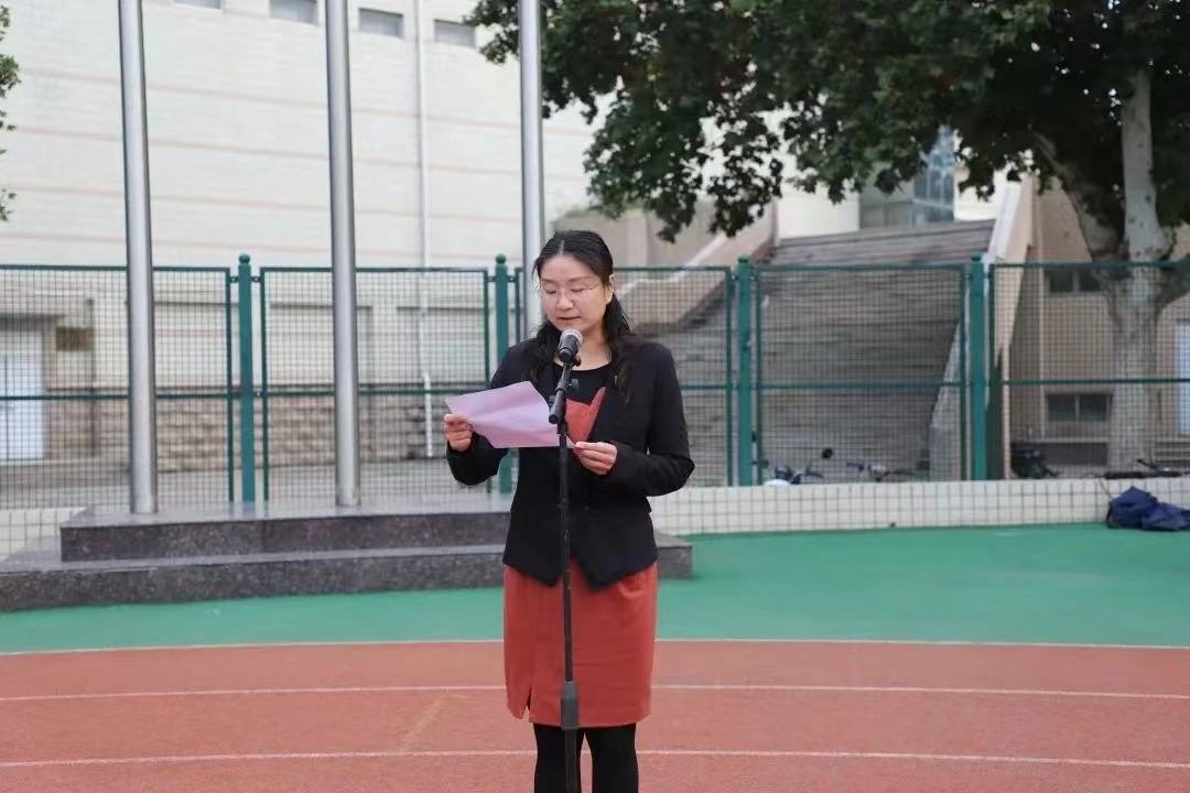 仪式伊始,在整齐的脚步声中,国旗护卫队出旗,全体师生肃立。国歌奏响,五星红旗在初日的辉映中缓缓升至最高点。随后,诗朗诵《百年征程》和合唱《请你检阅》环节歌颂了中国共产党的丰功伟业,彰显着新时代青年点亮中国梦的决心。接着,院党委书记秦素玲在讲话中表达了对新生的热烈欢迎,同时对同学们提出三点期许:一是心怀祖国,感恩奉献,把个人理想融入到国家、学校、学业、事业发展中;二是牢记强国有我的光荣使命,立志做有理想、敢担当、能吃苦、肯奋斗的新时代青年;三是脚踏实地,求真务实,摒弃骄娇二气,刻苦读书,用拼搏奋斗书写新时代青年学子的奋斗篇章。最后,毛书记进行总结发言,鼓励同学们为梦想而生,为青春而战,在人生大浪中激流勇进,挥斥方遒。至此,升旗仪式结束,同学们有序退场。