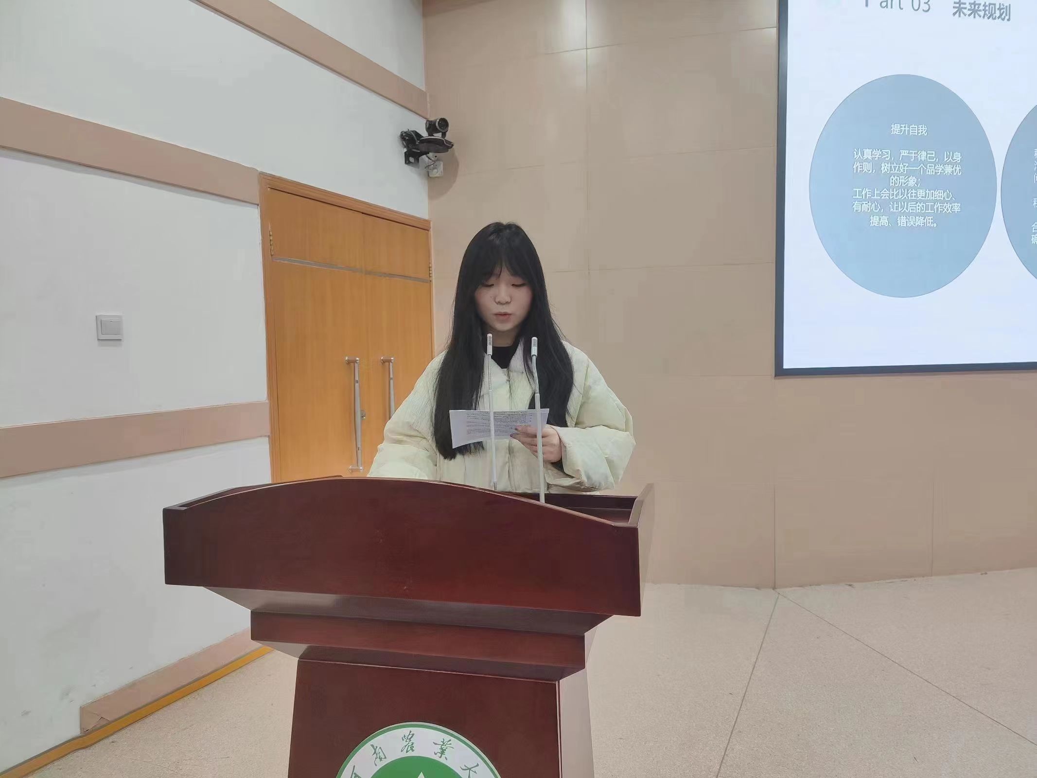 会议伊始,杨冰涛同学对本次选举的重要性和流程进行了简要的介绍。随后,杨冰涛同学对上一届学生会开展的工作进行了总结,表达了他对下一届学生会成员的要求和期望。紧接着,王佳怡同学代表学院第十五届学代会向本届换届选举大会报告代表资格审查情况,吕琳鑫同学宣读学生会换届选举方案,由学生代表进行投票表决。然后,杨冰涛同学宣读了本次竞选的监票、计票人员名单并对本次的竞选人进行了介绍。接下来,每位竞选者依次上台进行演讲,他们围绕着自我介绍、工作经验、岗位认知以及工作展望进行了自信而热情的演讲,赢得了同学们的信任和掌声,充分展现了青年大学生的昂扬向上的风采。最后,由冯帅老师做总结发言,他向同学们提出了要求,表达了期望,并希望每位同学都能为建设更美好的园艺学院而努力奋斗。