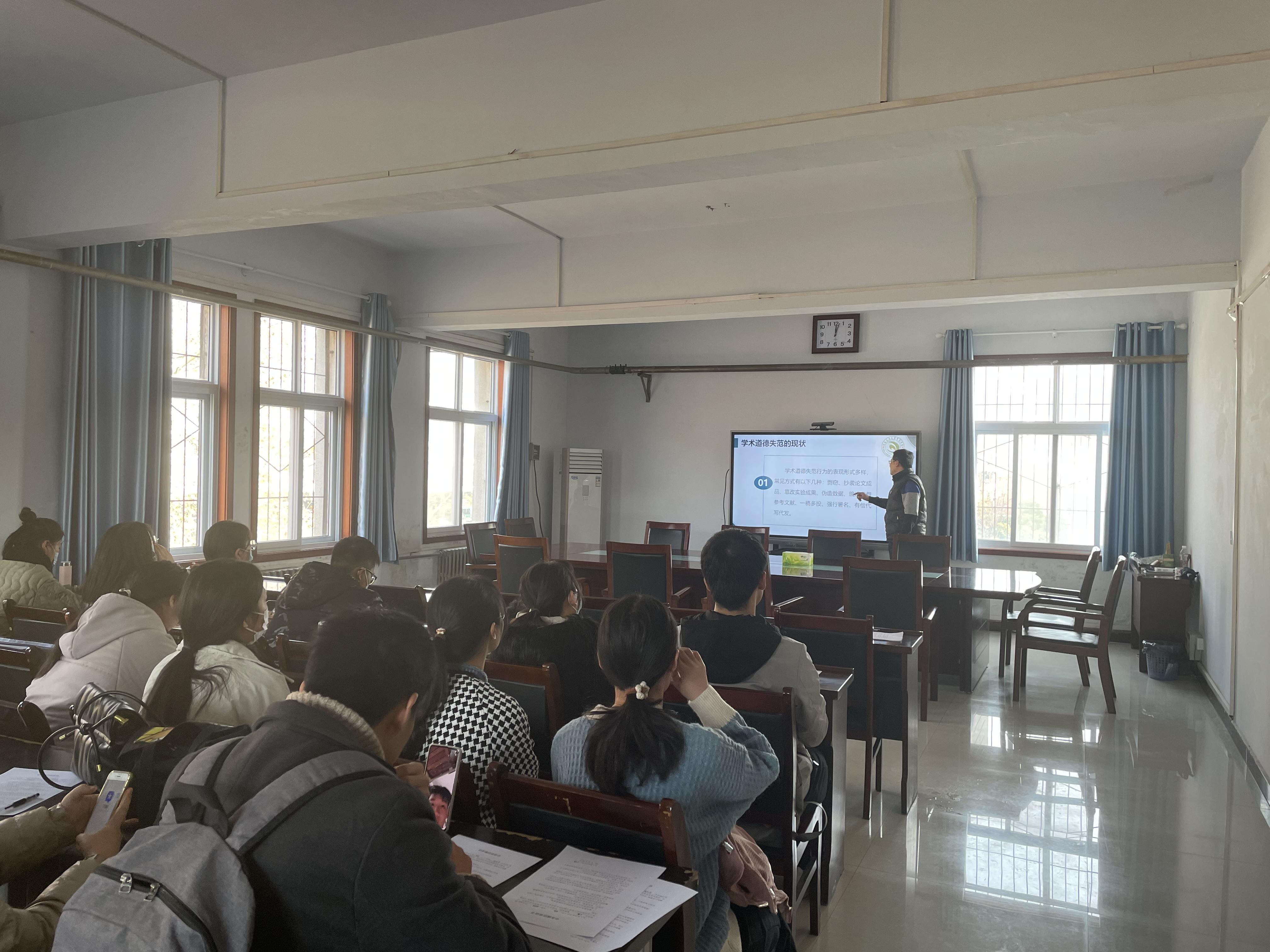 为贯彻落实河南农业大学2021年“厚生丰民,研行有道”研究生学术学风建设主题教育活动的精神,12月13日下午,院研究生班于2号楼413开展了“守规守矩做学术,笃诚笃信正学风”主题班会。本次班会由2021级研究生班团支书郭彦飞主持,研究生班主任牛旭旭及2021级全体研究生参加。