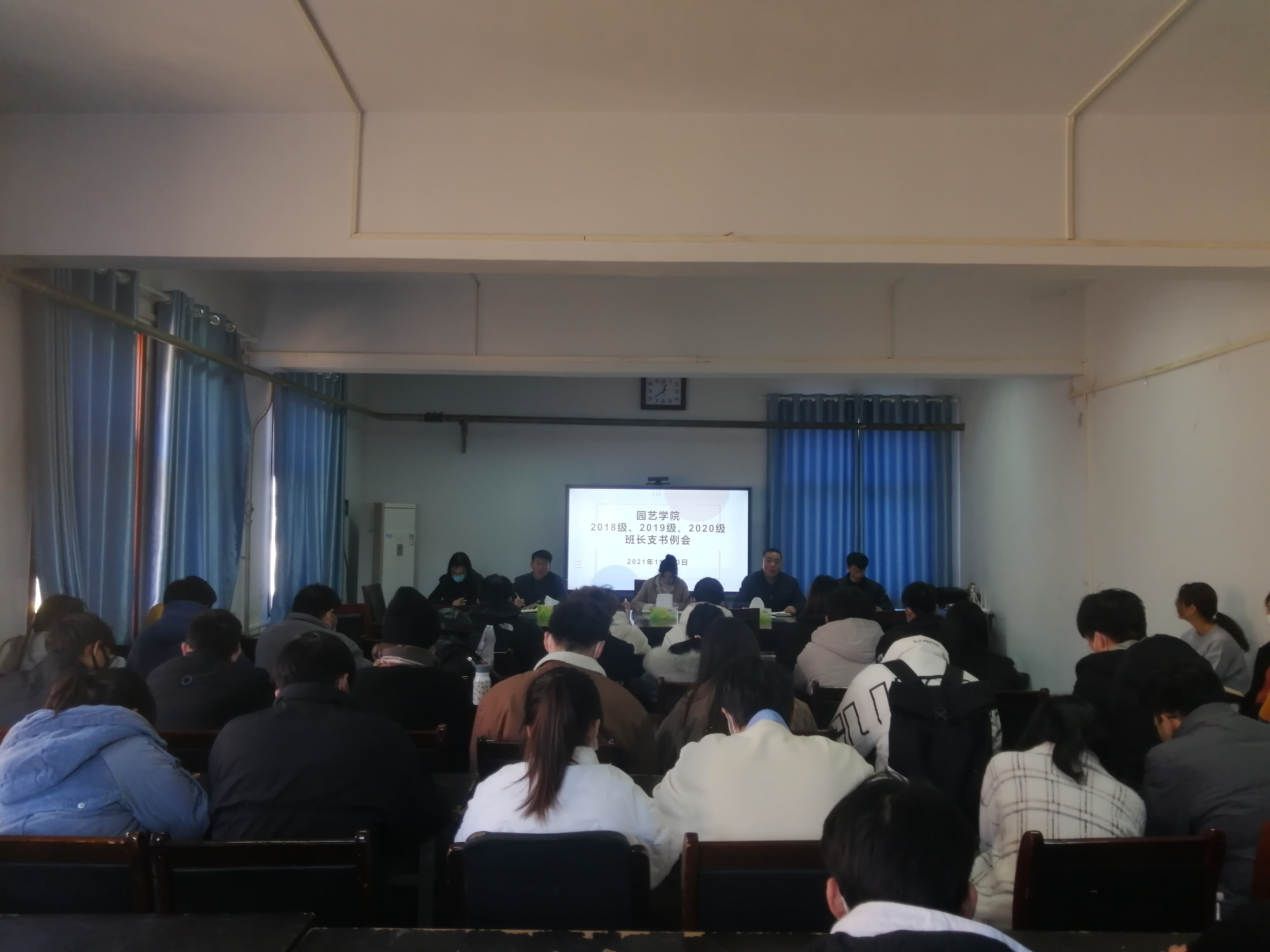 11月23日中午,我院于文化路校区2号楼413召开全体班长支书会议。院党委副书记毛会坡、院团委书记冯帅、2019级辅导员蔡思嘉、2020级辅导员丁坤、2021级辅导员何畅及园艺学院全体班长支书参与本次会议,本次会议由我院团委书记冯帅主持召开。