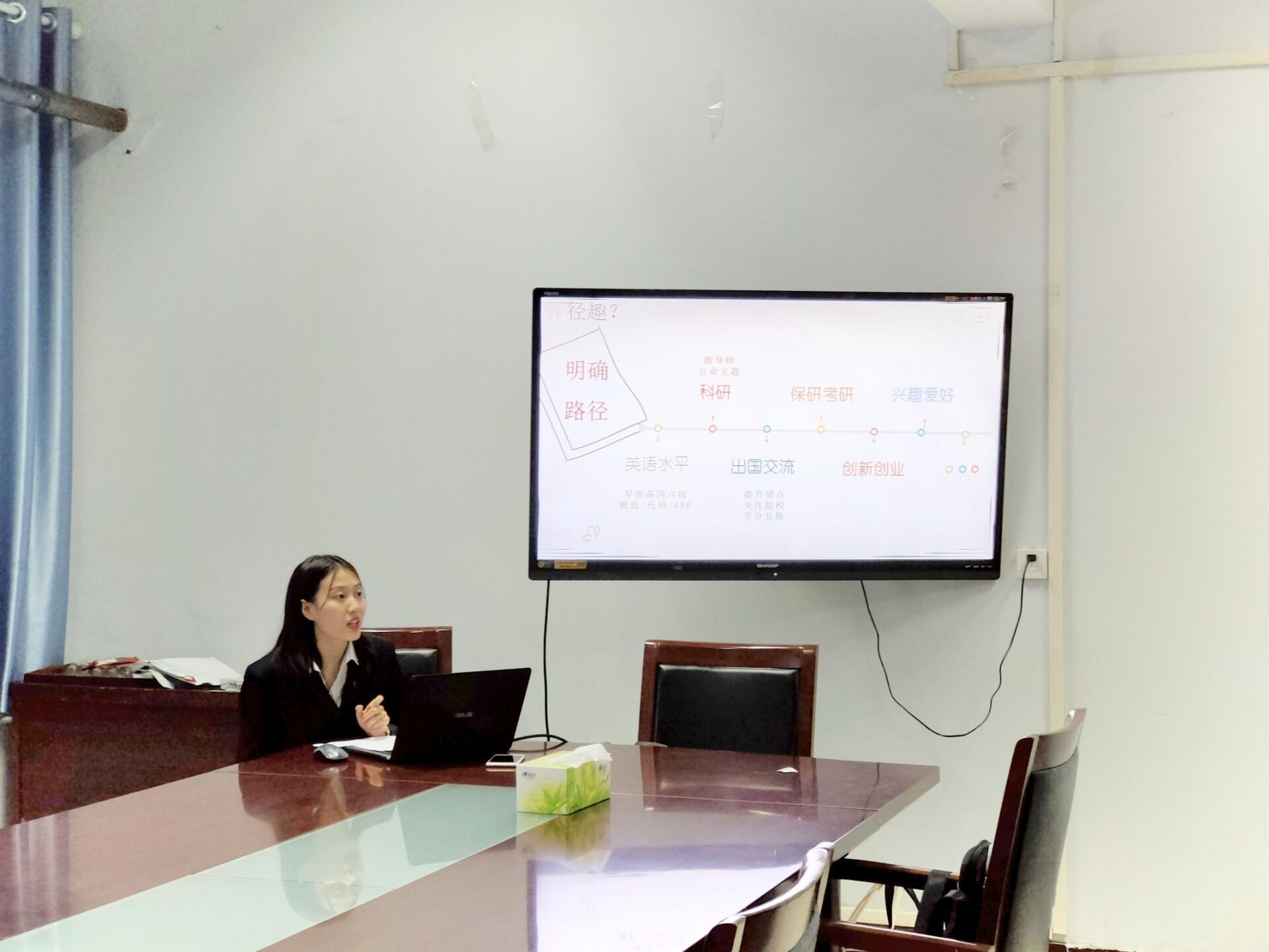 活动伊始,蔡艺蓓分享了自己大学生涯的个人经历及所获相关荣誉,鼓励20级新生们积极参与校内外活动,做到理论与实践相结合,锻炼自身综合素质以迎接更多的机会与挑战。随后,蔡艺蓓从有“志趣”、找“径趣”、会“趣时”、要“讨趣”四个方面向大家讲解应该如何度过大学四年的生活,并建议大家可以在大一多尝试,大二学取舍,大三找规划,在不断地探索过程中明确自己今后的发展方向和目标。继而,蔡艺蓓又分别从英语学习、科研活动、出国交流、保研考研、创新创业以及兴趣爱好等方面向大家分享如何去实现自己的目标,并寄语参加活动的同学们,希望大家在大学这一全新的人生阶段能够活在当下,过好属于自己的精彩人生。在最后的交流互动环节,大家就考研保研、学习方法等问题踊跃发言提问,蔡艺蓓一一解答,现场气氛活跃,本次活动在欢快的氛围中圆满落下帷幕。