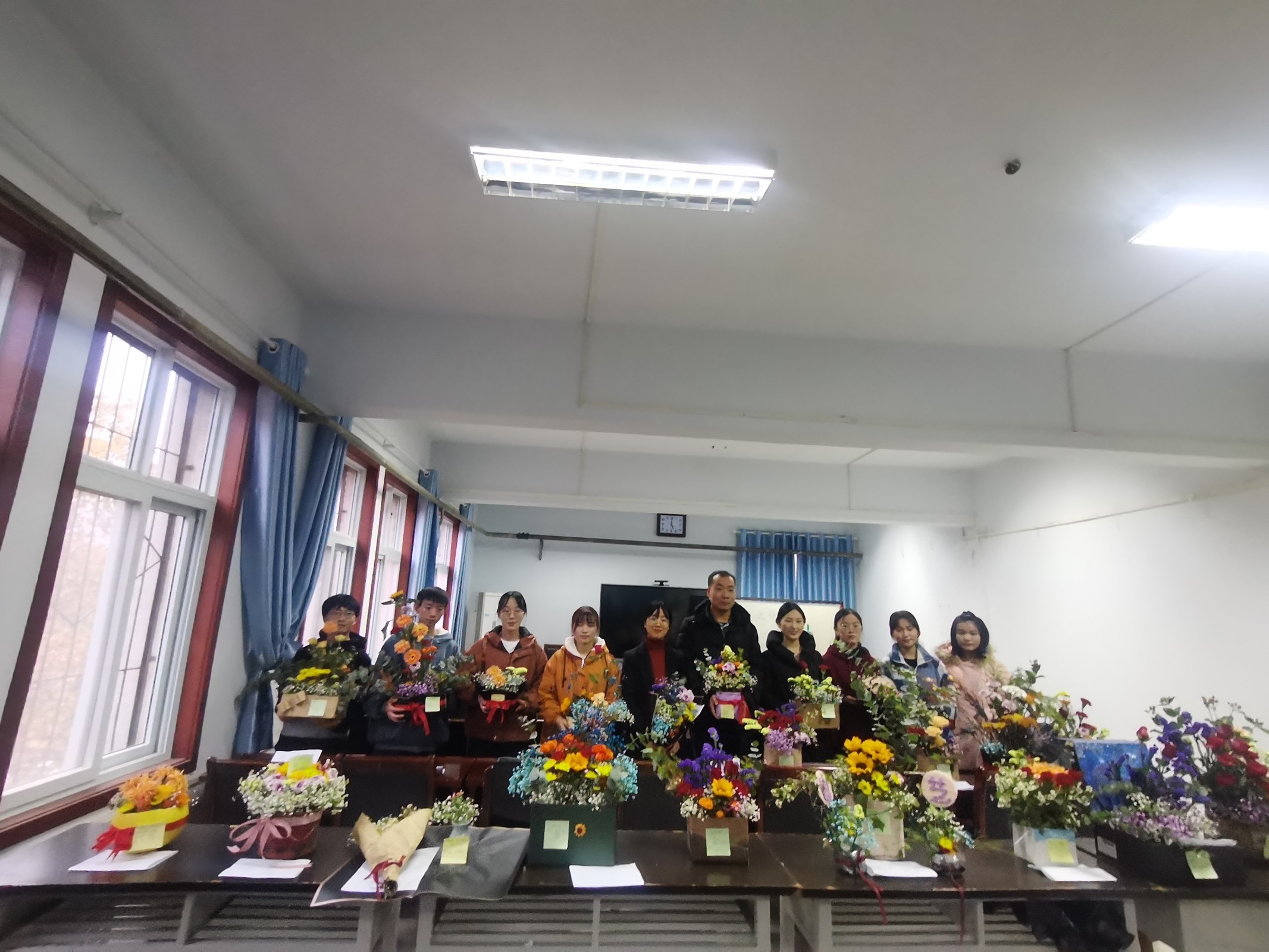 11月22日,园艺学院花语协会在2号楼413室举办插花比赛,社团指导老师陈桃、孟更老师和25组插花比赛的选手共同参加了本次活动。
