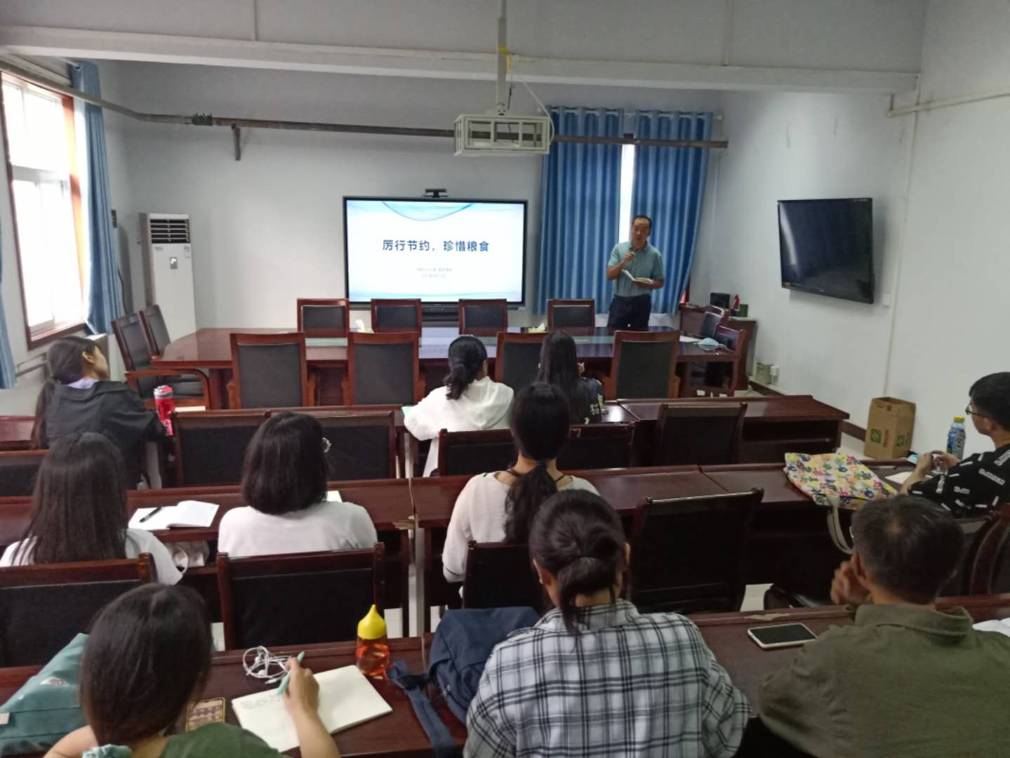 首先,陈老师结合播放观看的视频,就校团委组织开展的“勤俭养德 珍惜粮食”主题教育活动进行了说明动员,倡导大家养成良好的生活习惯,树立勤俭节约意识,强调了“厉行节约,反对浪费”的重要性,并鼓励同学们积极参与到主题教育活动的志愿服务中来,通过广泛的参与,用自己的实际行动,践行节约粮食,文明用餐好风尚。