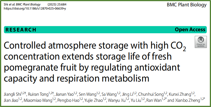 2025年5月,园艺学院苹果逆境生物学与简约栽培技术团队在BMC Plant Biology(中科院2区TOP,IF 4.8)发表题为“Controlled atmosphere storage with high CO