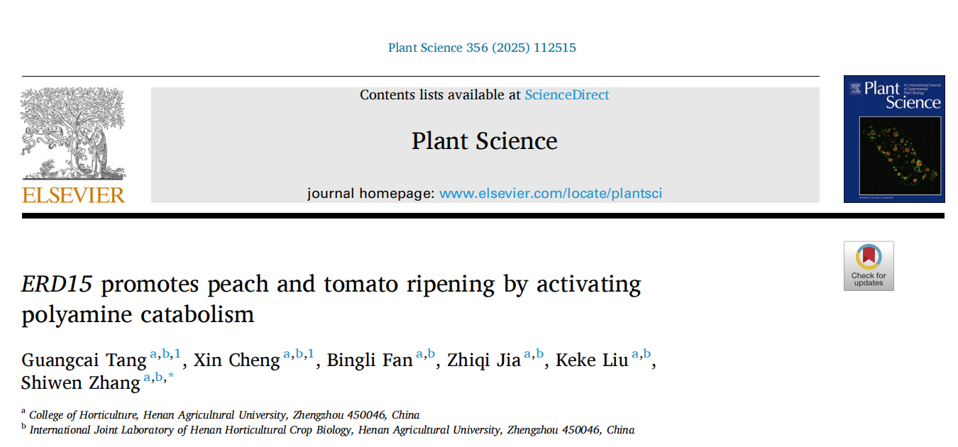 河南农业大学园艺学院研究生唐光彩与已毕业硕士生程鑫为共同第一作者,张世文副教授为论文的通讯作者。团队教师贾芝琪副教授、刘珂珂老师、研究生范冰丽参与了该研究。本研究得到了国家自然科学基金(31902024) 的资助。