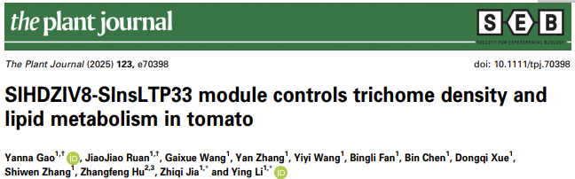 近日,河南农业大学园艺学院茄科抗病抗逆种质创新团队在国际知名期刊《The Plant Journal》杂志发表了题为“SlHDZIV8-SlnsLTP33 module controls trichome density and lipid metabolism in tomato” 的研究论文,首次揭示了非特异性脂质转移蛋白