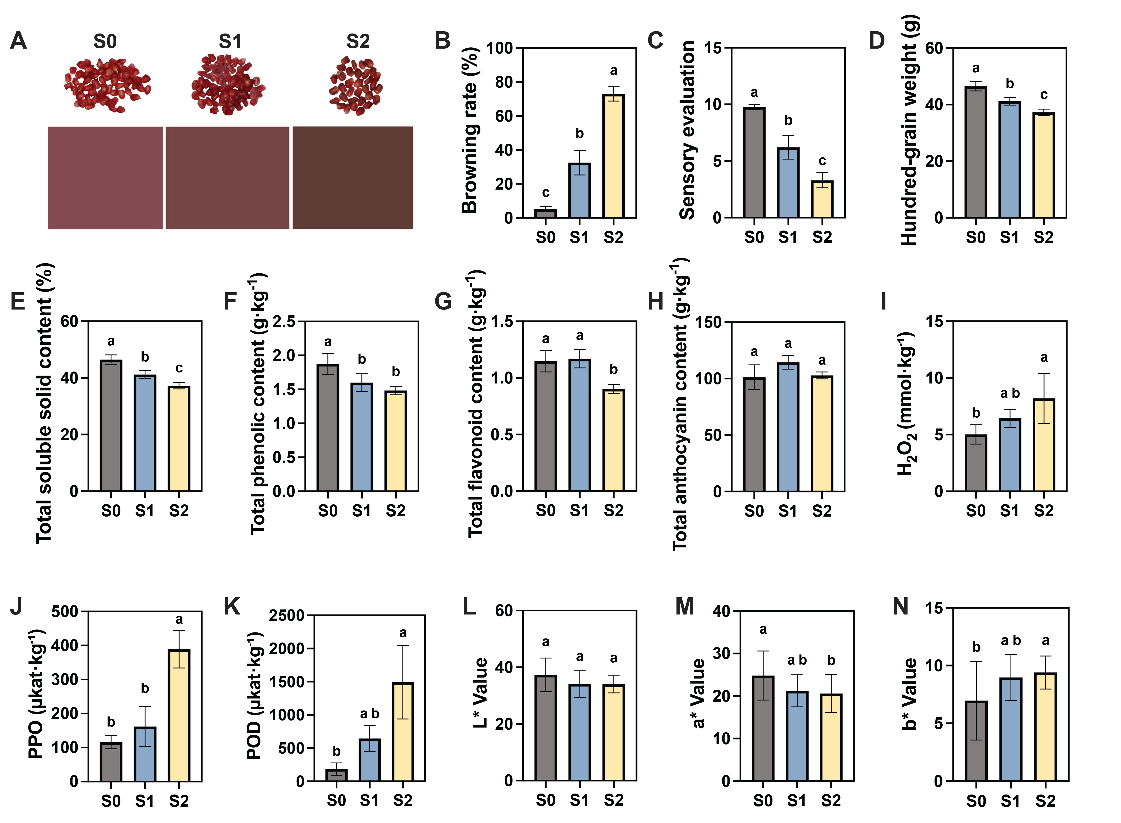 Postharvest Biology and Technology(最新影响因子6.8)。发表研究论文“Integrated transcriptomic and physiological analysis highlights the candidate genes regulating enzymatic browning, antioxidant capacity, and lipid metabolism in pomegranate aril browning”。鲜食石榴籽粒冷藏过程中易发生籽粒褐变,导致外观品质、营养价值下降、商品寿命缩短,严重影响了石榴产业发展,但其分子调控机制仍不清楚。