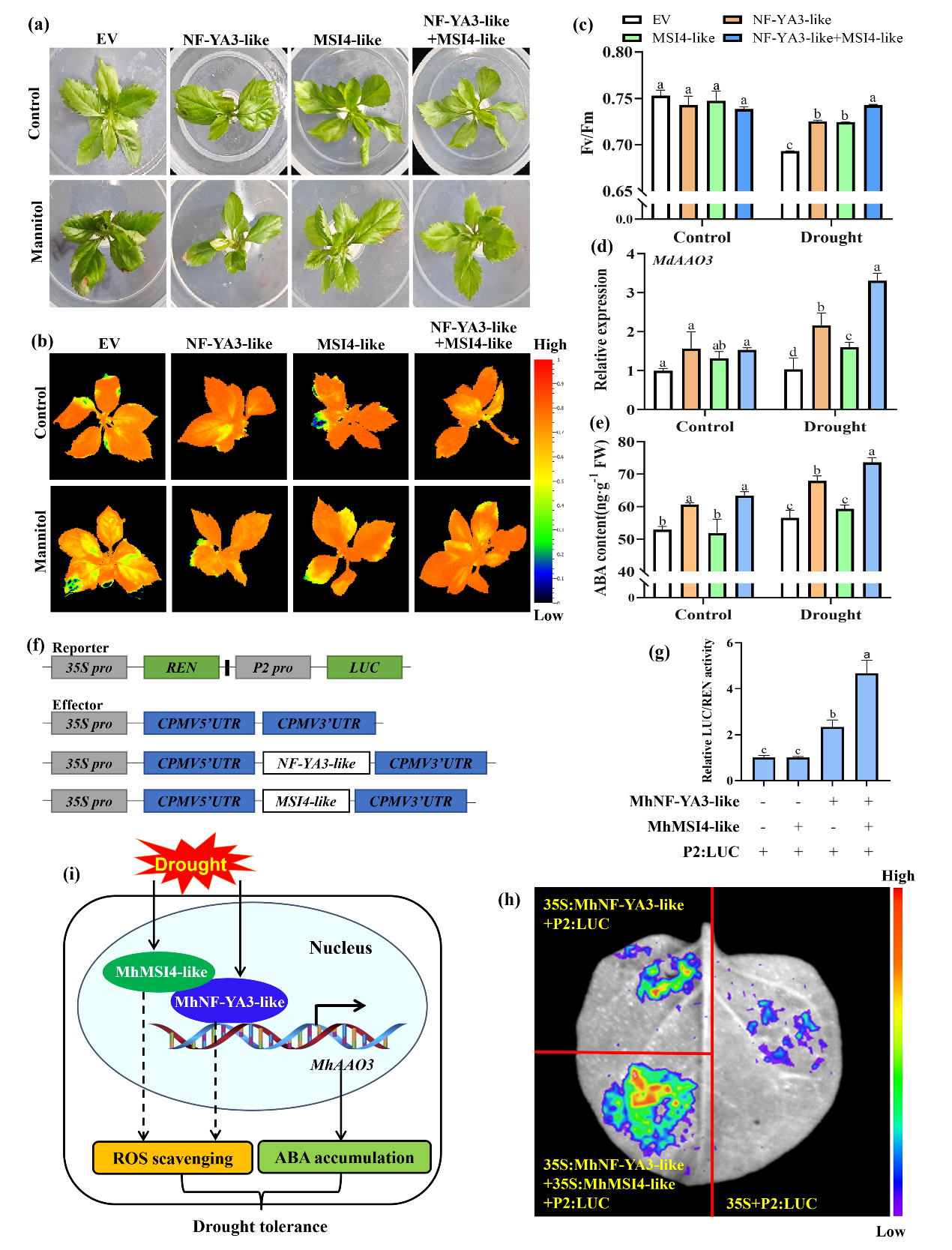 近日,河南农业大学苹果逆境生物学与简约栽培技术团队在国际著名期刊Plant Physiology(中科院一区Top)发表了题为“The MhNF-YA3-MhMSI4-like module regulates apple drought tolerance by activating the expression of MhAAO3”研究论文,该研究发现MhNF-YA3与MhMSI4-like蛋白互作促进ABA的积累增强苹果的耐旱性。
