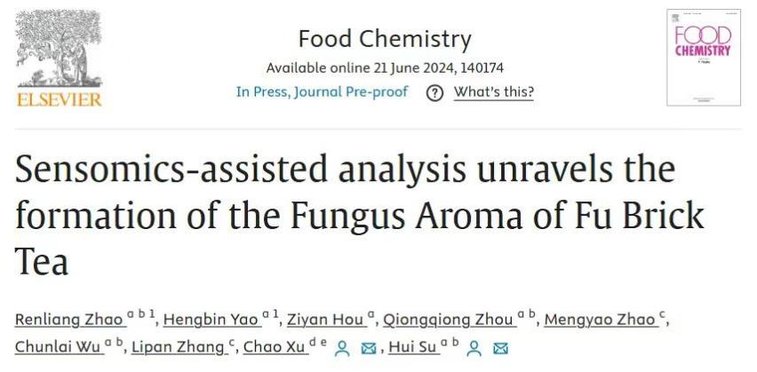 近日,河南农业大学园艺学院茶学团队在期刊Food Chemistry 杂志上在线发表了题为Sensomics-assisted analysis unravels the formation of the Fungus Aroma of Fu Brick Tea的研究论文,揭示了茯砖茶“菌花香”香气的关键挥发性化合物及其互作机制。