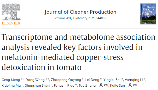 Transcriptome and metabolome association analysis revealed key factors involved in melatonin-mediated copper-stress detoxication in tomato"在Journal of Cleaner Production(中科院1区TOP,IF 9.7)上发表,