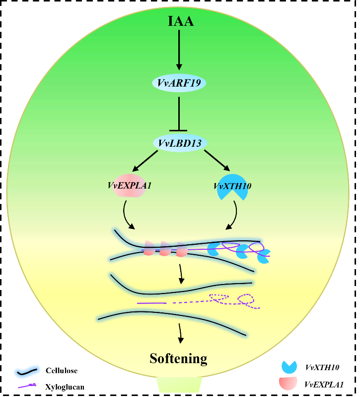 VvARF19 represses VvLBD13-mediated cell wall degradation to delay softening of grape berries的研究论文,研究结果为‘VvARF19-VvLBD13’模块响应生长素调控葡萄果实软化分子机制。