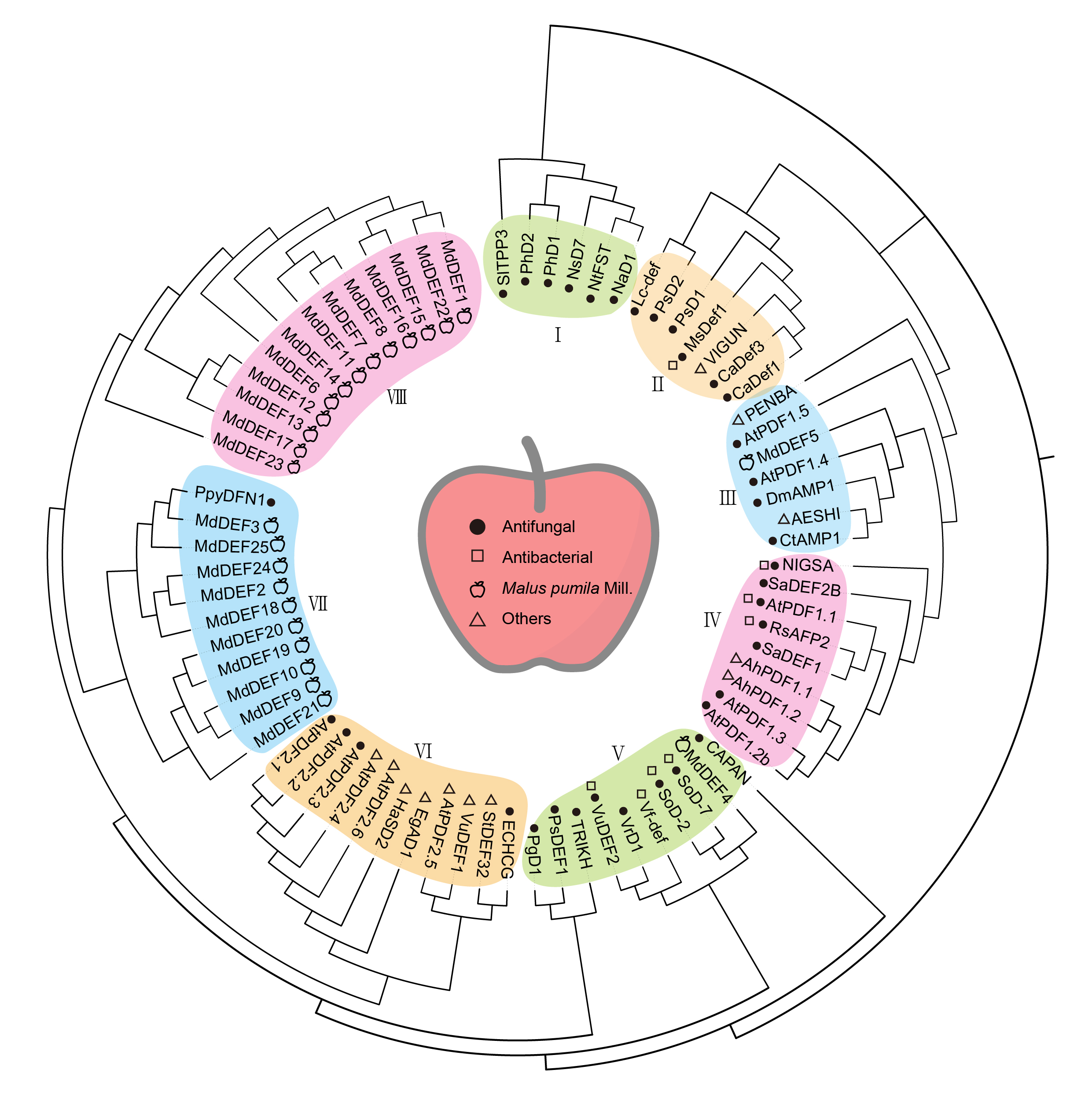 文章链接:Genome-wide investigation of defensin genes in apple (Malus×domestica Borkh.) and in vivo analyses reveal that MdDEF25 confers resistance to Fusarium solani - ScienceDirect