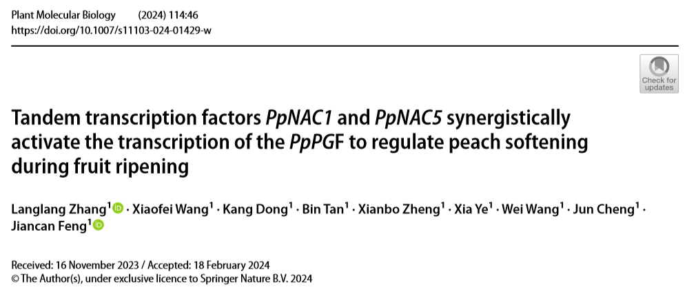 PpPGF to regulate peach softening during fruit ripening”的研究论文,揭示了串联转录因子